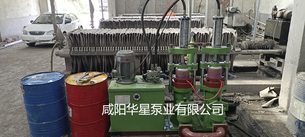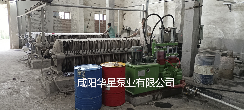 一臺華星YBH壓濾機專用節能泵給4臺壓濾機進料